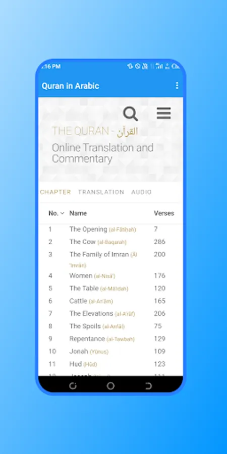 The app's main feature is the ability to read the Quran in Arabic, with intuitive navigation features that make it easy to jump between different chapters and verses. Users can also search for specific passages, bookmark their favorite verses for later reference, and even listen to recitations of the Quran to enhance their understanding of the text.