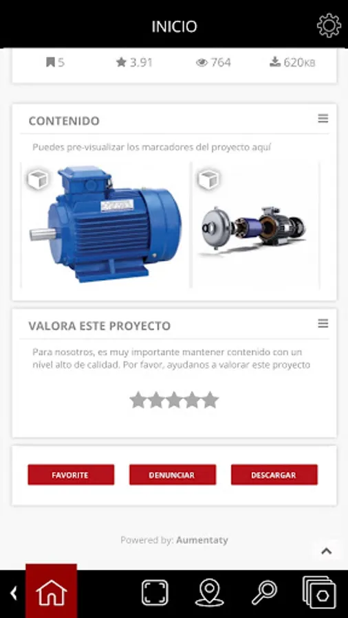 With Scope you can detect and display any content augmented reality application generated with our Creator. Scope navigates the social network Aumentaty and download any project that interests you. Displays scenes with 3D objects, whether yours or other users, value them, improve them and reenvíalos your followers and users of Aumentaty.