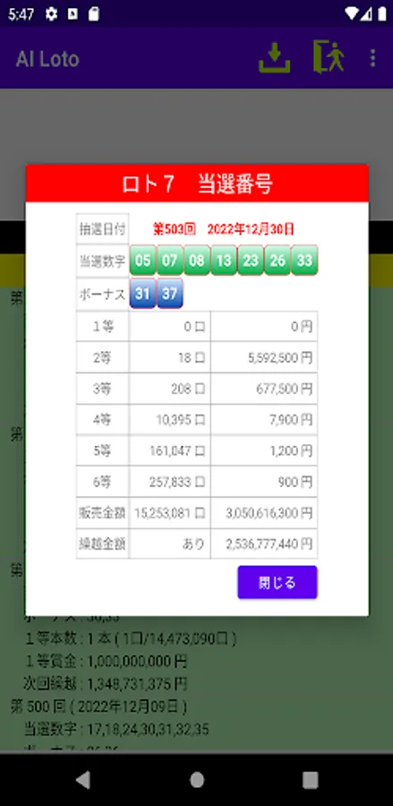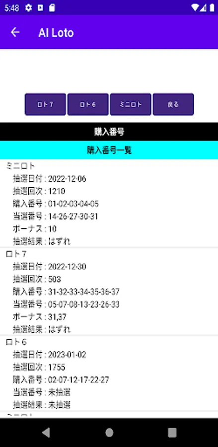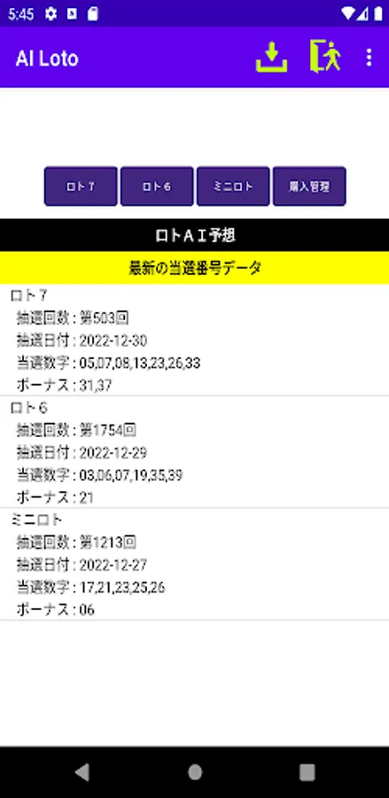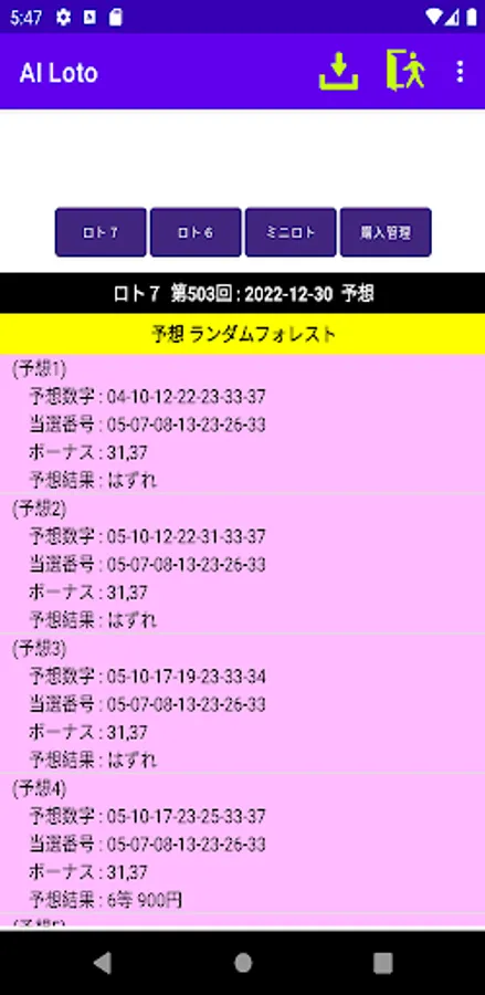 It is an application that provides winning number information of lotto 7, 6, mini lotto and AI prediction number information.