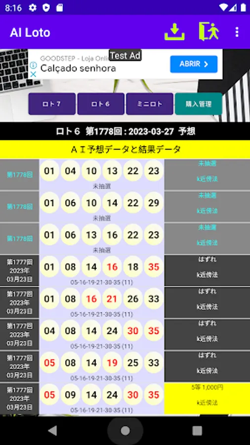 AI prediction number is number prediction data calculated by giving past winning number data to python library, so it does not guarantee winning.