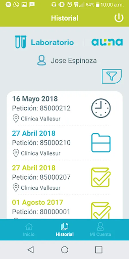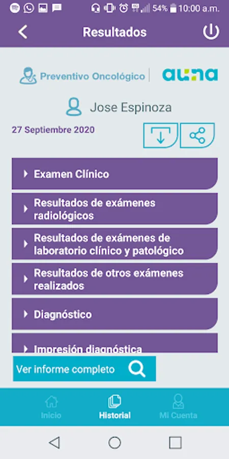 Application that allows patients and doctors from the Auna Clinics to view laboratory results and preventive cancer screenings.