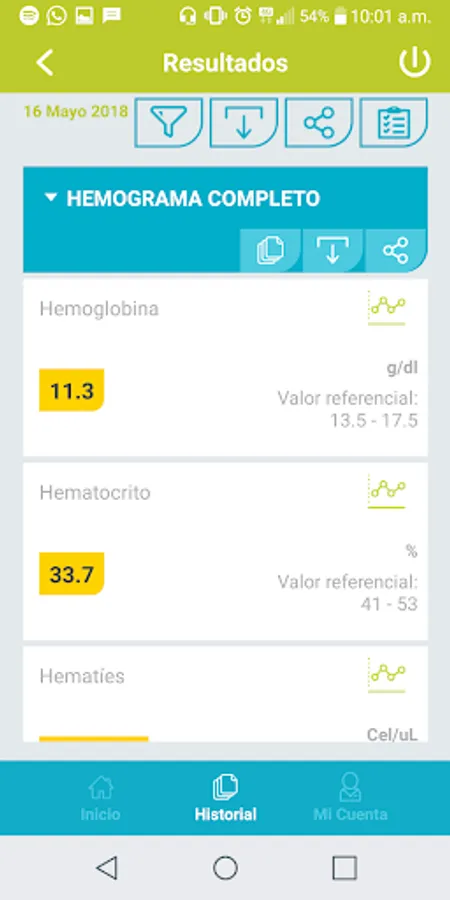 The user can keep a history of their results, download them and / or share them with their treating doctor, and also visualize the trend of their results over time.