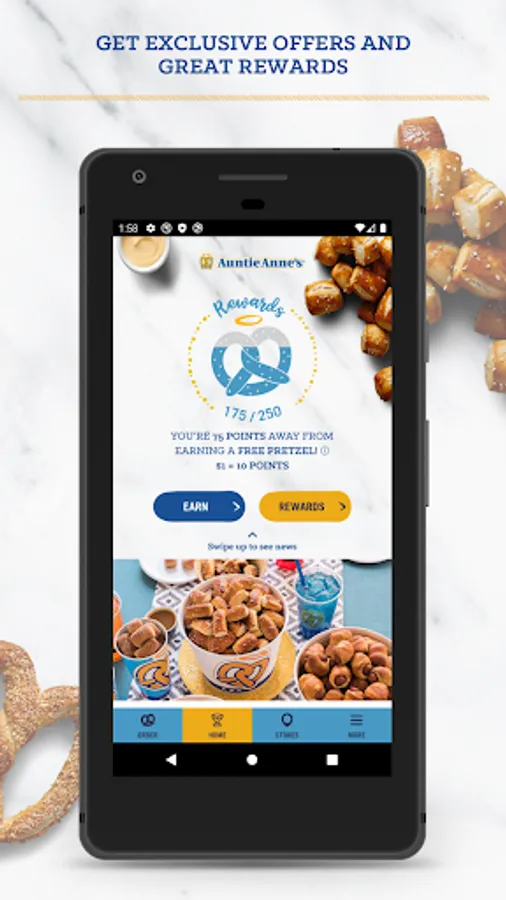 Get exclusive coupons and special rewards, earn points towards free pretzels, and place contactless mobile orders for delivery or pickup (curbside pickup where available). The Auntie Anne’s Pretzel Perks app lets you earn points toward free pretzels with every purchase – Oh how sweet (or salty) it is!