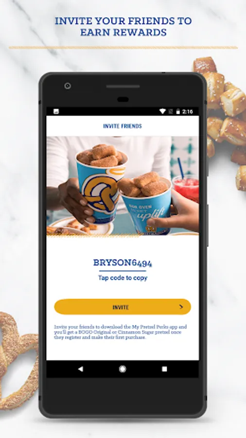 Enjoy a free pretzel after your first purchase (minimum $1)!