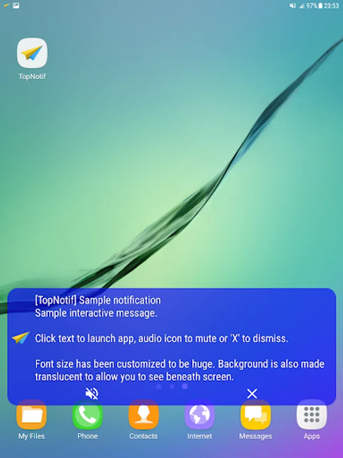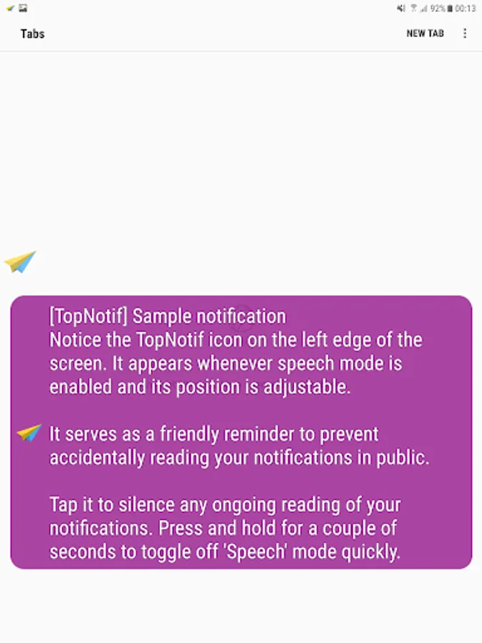 TopNotif is a companion app for your device's notification experience. It allows you to preview your notifications with toast balloon messages. It can also read out notification contents and incoming Caller IDs (not supported on Android 9.0 Pie and above).