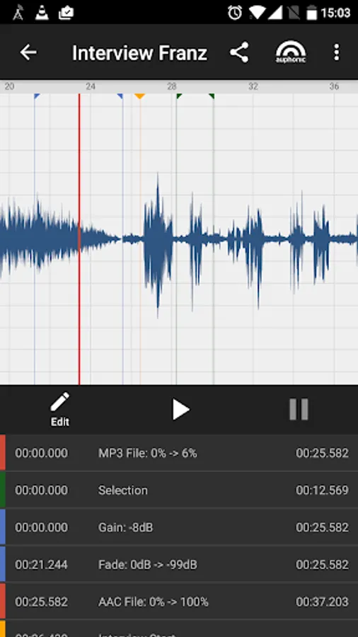 Auphonic Edit implements the minimum amount of features required to cover the most common audio editing tasks, conforming to standard native UI idioms of Android: