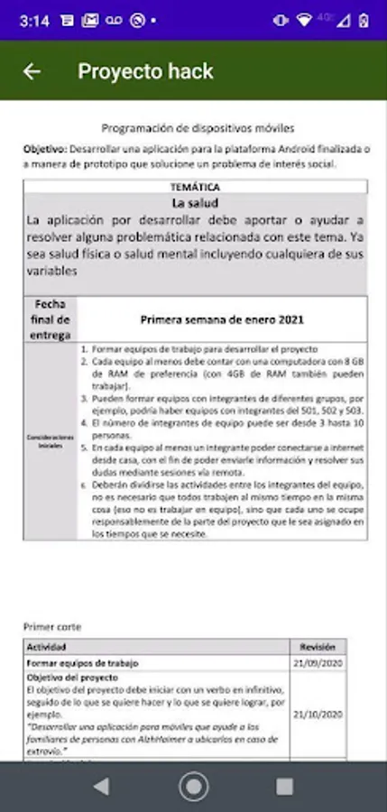 In this application, school notes and exercises are shown to promote the knowledge obtained in the readings. The content of the notes are developed by the teacher of the subject in question and will be complemented with exercises to test the knowledge acquired