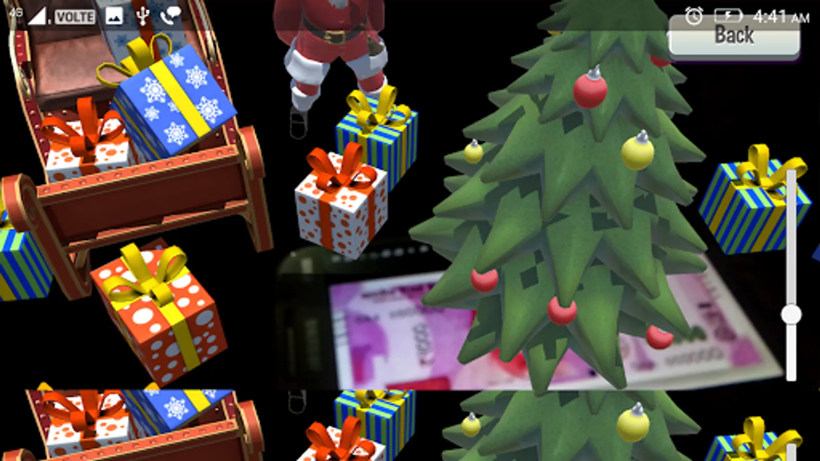 MagicCurrency app use advance augmented reality technology to make 2000 or 500 rupees note a magical note by showing santaclaus and christmas on it. You can also decorate Christmas tree by dragging object various object on tree.