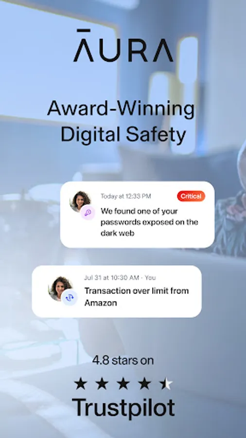 Aura is an all-in-one digital safety and protection solution that helps keep you safe from identity theft, financial fraud, and online threats. Protect your data and stay one step ahead of threats so you can go online worry-free.