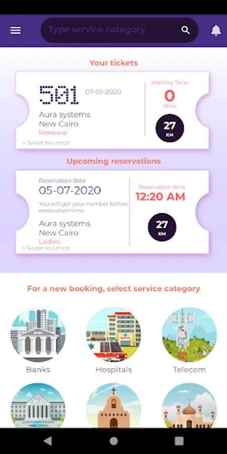 Turni is a mobile application that allows users to browse participating banks, car dealerships, public offices, hospitals, clinics, telecom companies, public service providers...etc to reserve an appointment or see the status of the queue at each branch and book a ticket and receive a ticket number with integration with the installed queuing system.