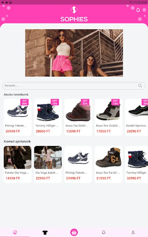 Rendelj a Sophies alkalmazásról több neves márkás terméket, mint például: Tommy Hilfiger kids, Primigi, Asso Gyerekcipők. Igi&Co , Karino, Nessi, Via Roma, Ola Voga , Nōbo és sok sok Női márka.