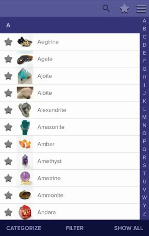 Favorites feature lets you keep track of your favorite minerals and crystals for easy access.