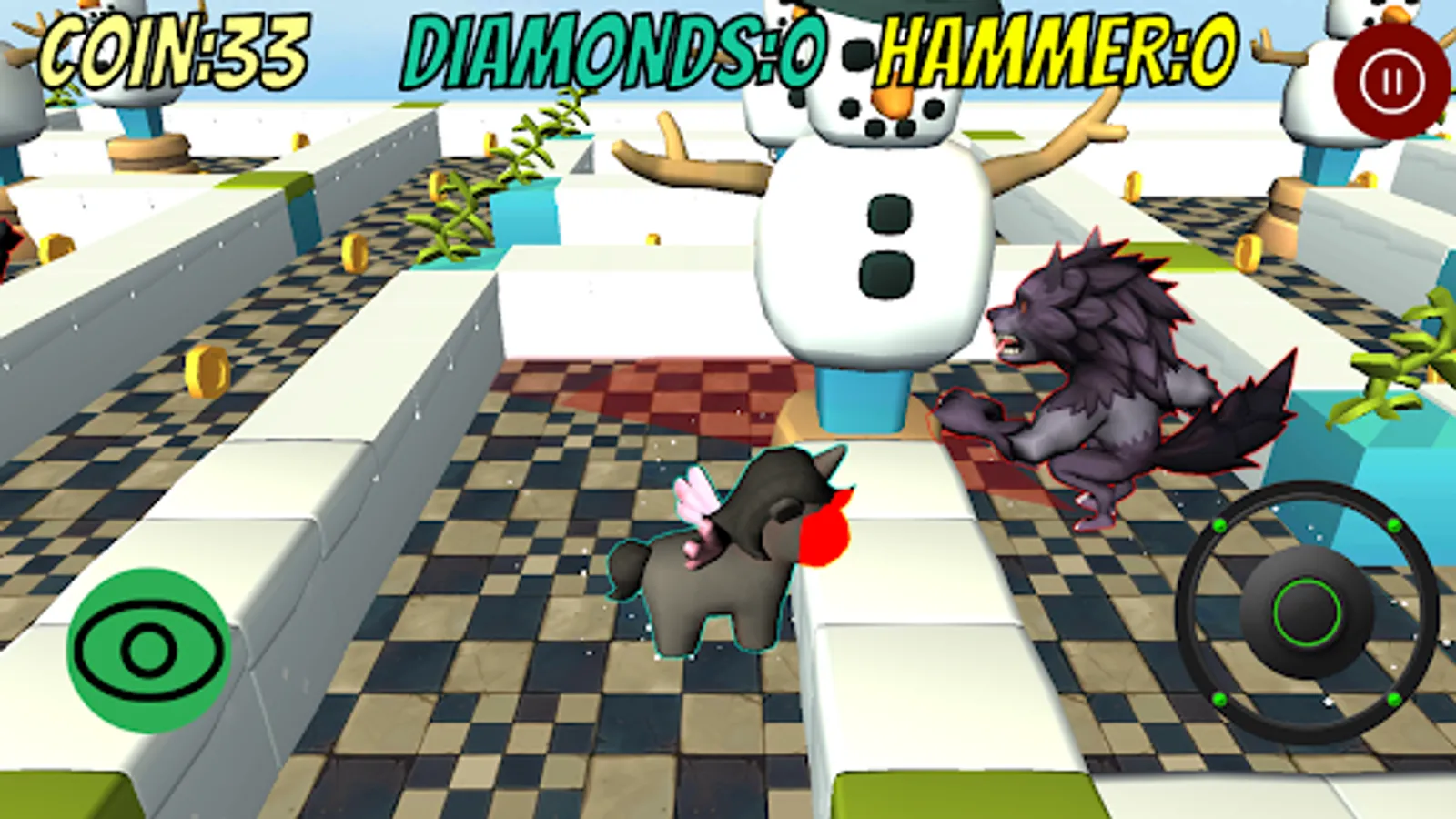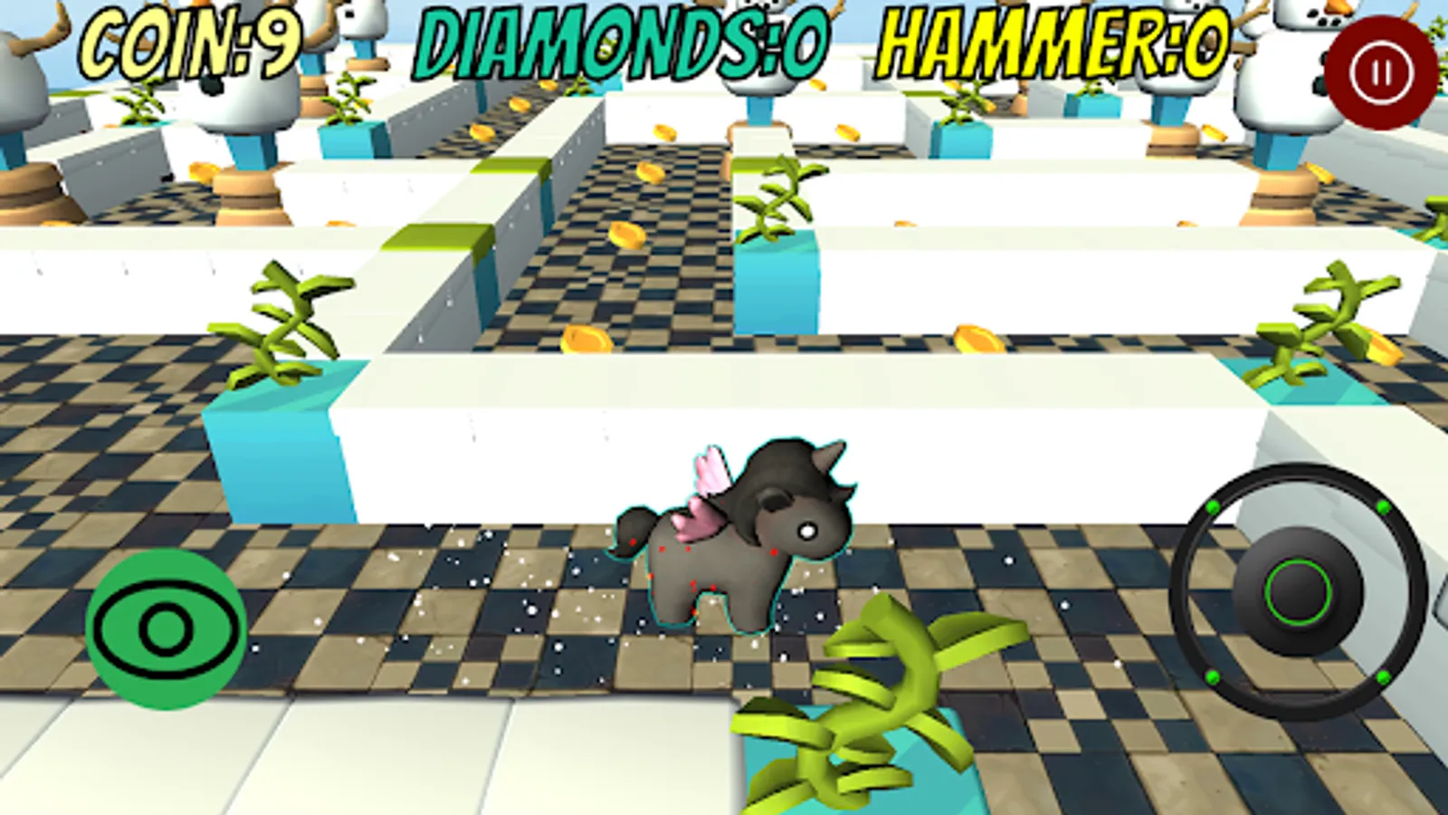 In this epic maze runner game, the player has to escape the labyrinth room. The maze is full of enemies and confusing paths. In epic maze runner 3D, enemy characters are wolves. The player character is a pony and can change with coins. The maze runner has to find a way to escape the maze 3D while sneaking through enemies. If enemies caught the maze runner, aka pony, you must run far from the enemy to save his life; otherwise, you will die.