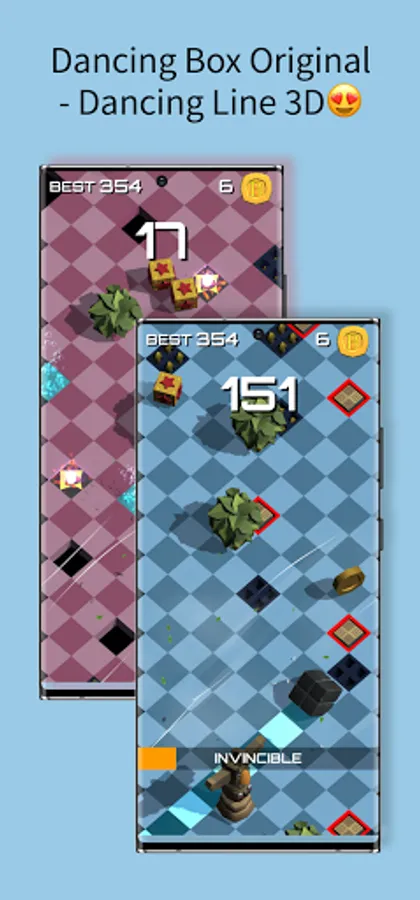 Dancing line 3D is a simple game that has a unique experience with simple graphics. It is an endless game with increasing difficulty as time passes. The key to success is not to fall in the pit and don’t get hit by any obstacles until you beat highest score and set new highest score. These simple rules will allow the dancing box to stay to draw a dance line zigzag.