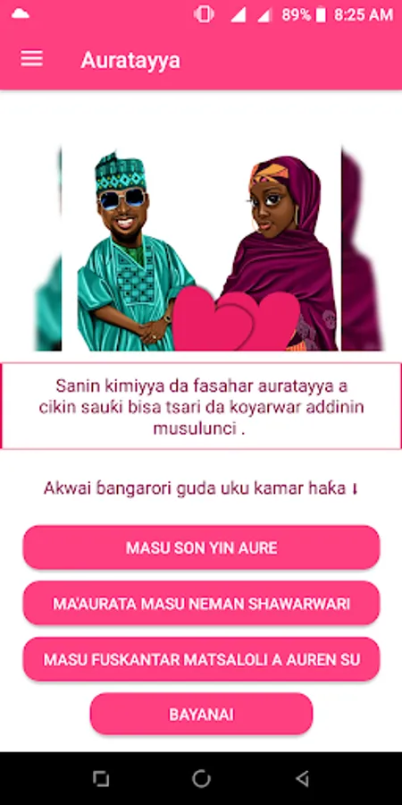 wannan manhajar ta kunshi shiri da zai tattauna akan abinda ya shafi ma'aurata yanda kowane ma'aurachi zai saukewa daya abokin zaman hakkin sa