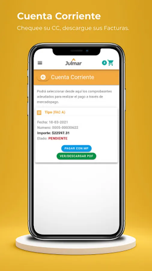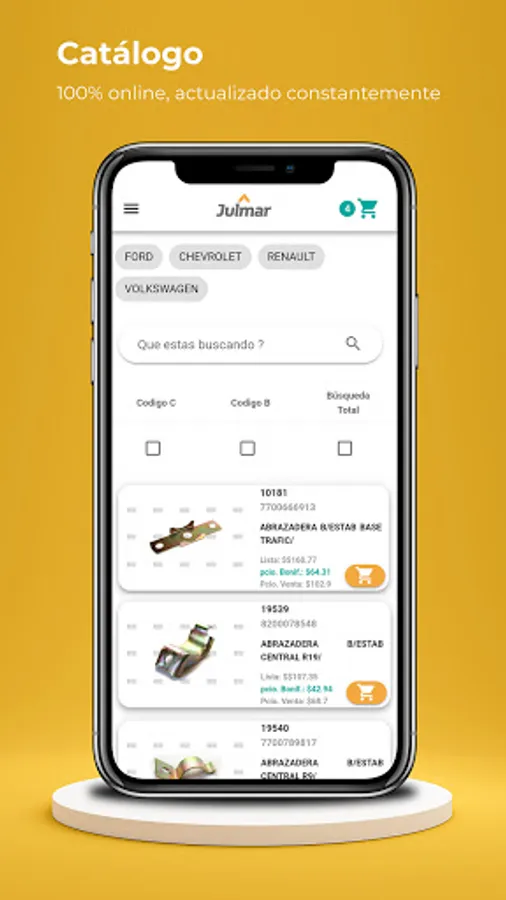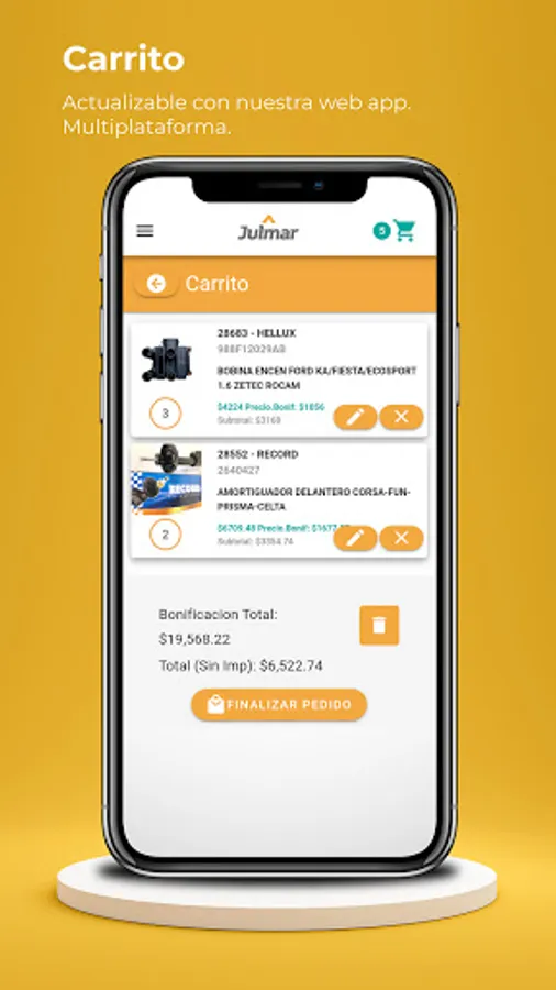 Access the Julmar online catalog and all its features. Add products to your multiplatform cart (web app and mobile app), check your checking account, download your invoices and place your orders. All the functionalities from this App.