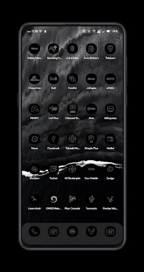 • Clean, minimal icons that look great on dark or blurred wallpapers.