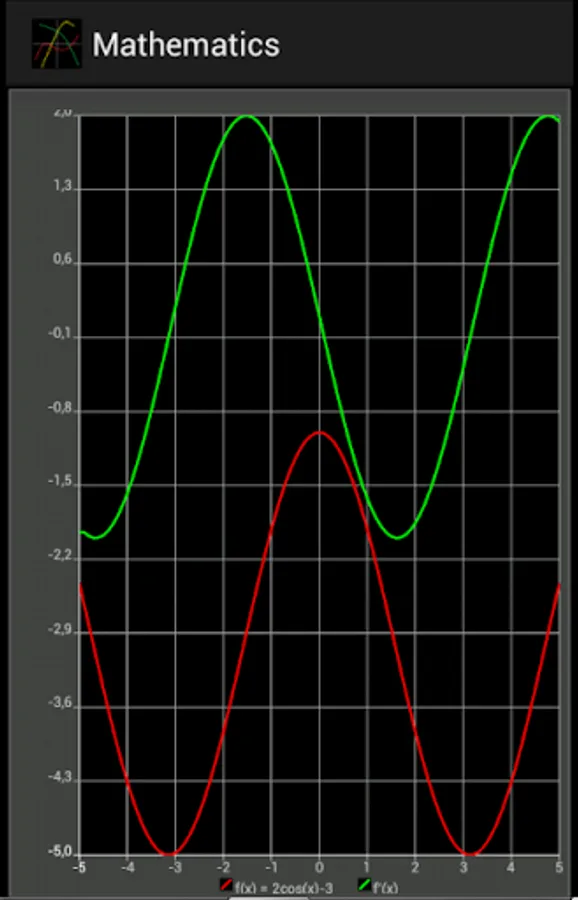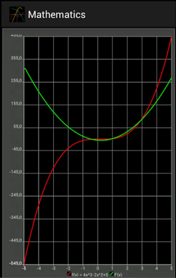 It is possible to display derivative function, so you can see both f(x) and f'(x) curves.