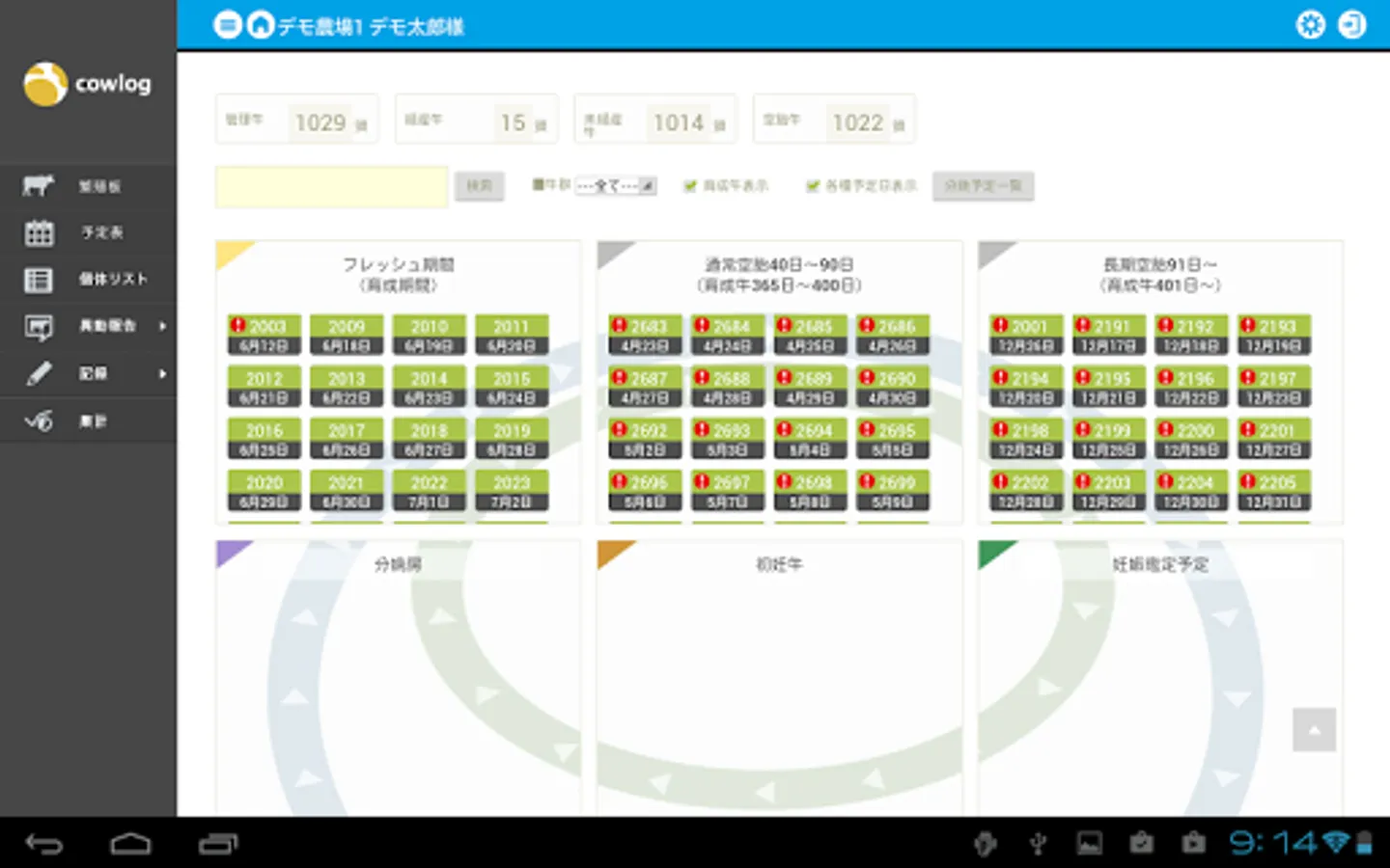 ・繁殖サイクルを開くだけで警告牛の把握も瞬時に可能