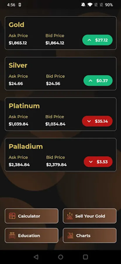 -Live Spot Prices of Gold, Silver, Platinum, and Palladium