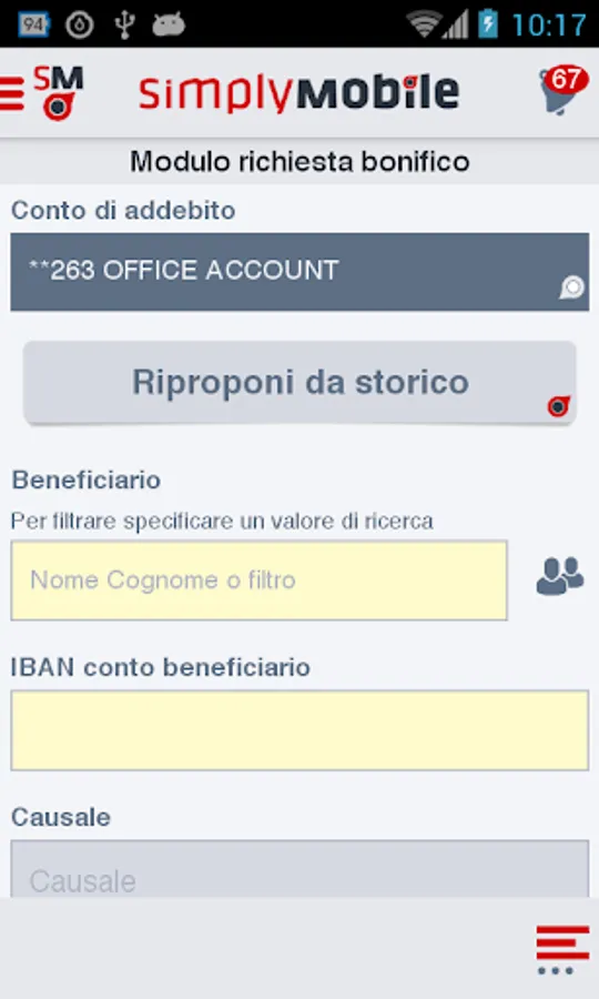 If you are a SimplyBankWeb©, BancaincasA, Banca in linea or Mito&C user and SimplyMobile is included in your bank product suite, you can easily log on using your Internet Banking credentials (User ID and Password). Otherwise, ask your bank for further information.