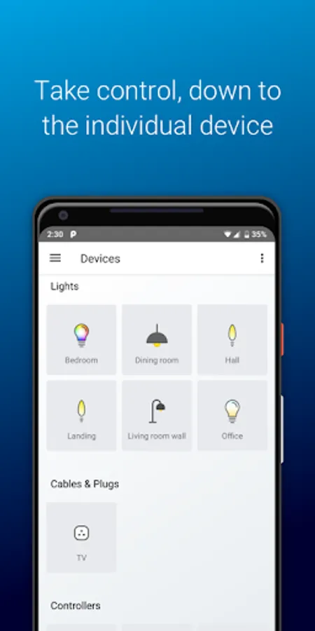 The new AOne™ kit includes one hub, two controllers and some downlights (region specific). Once installed users can take charge of their lighting from anywhere in the world via the AOne App.