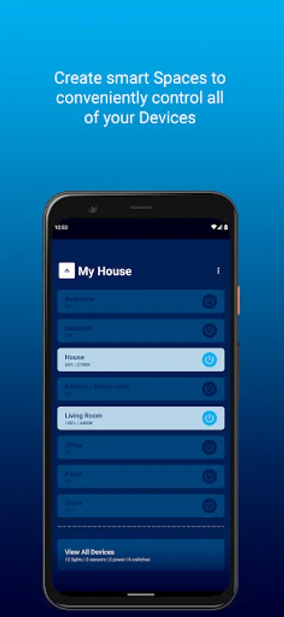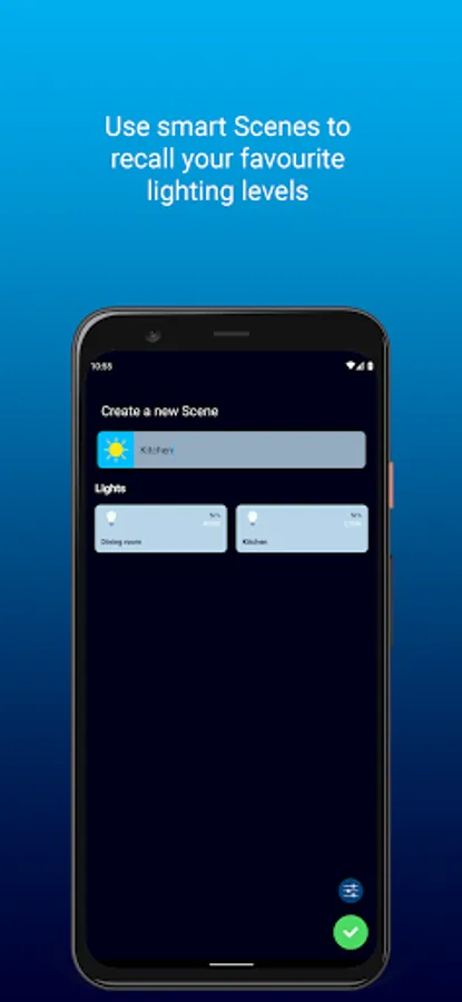 You can save the current settings of all your Devices in a Space as a Scene that can be recalled again and again. By saving a set of Scenes you can quickly and easily set your Devices to your mood.