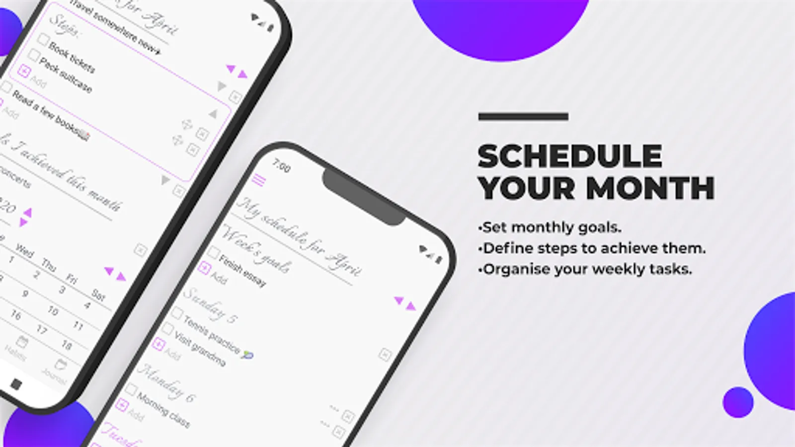 Keep track of your habits, your appointments and write down your thoughts with ease.