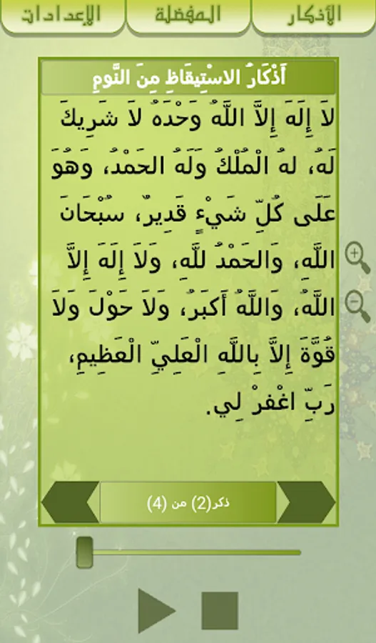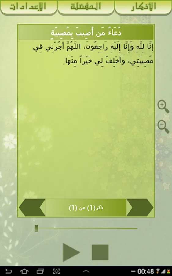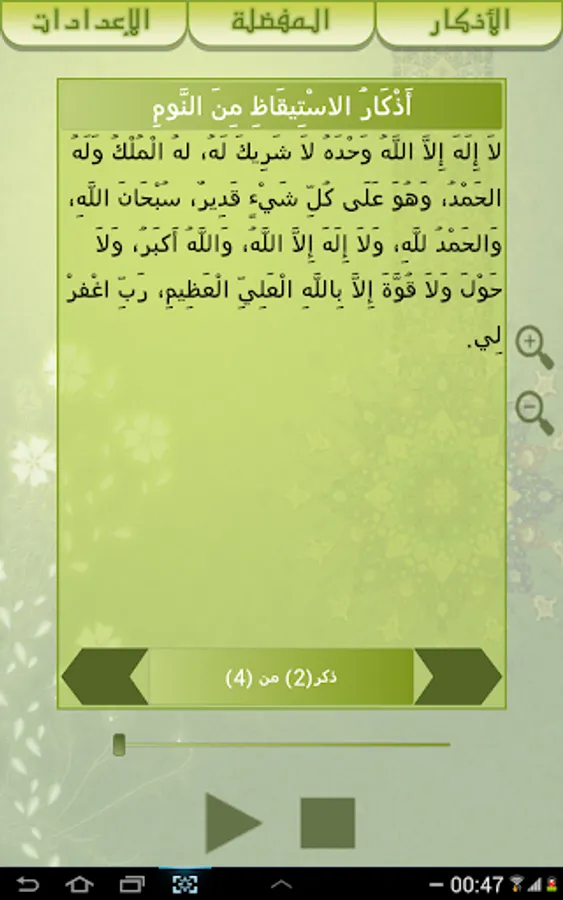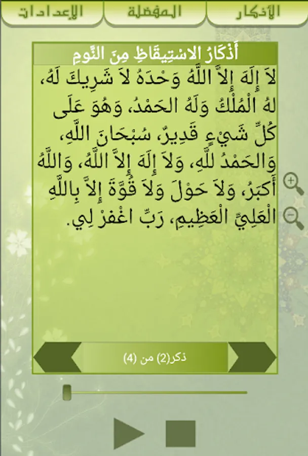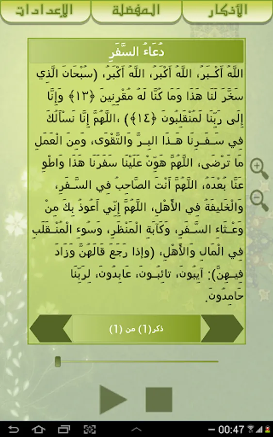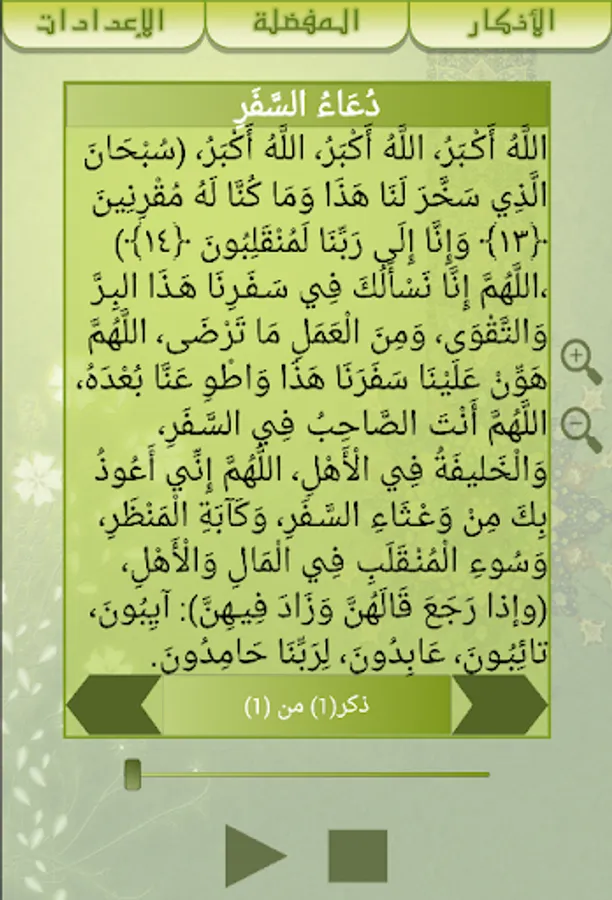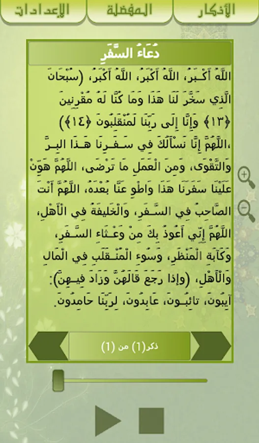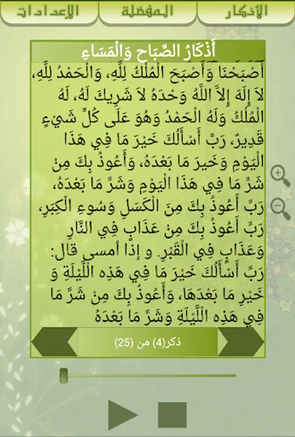 This program has a set of audio supplications and dhikr and read from the book, such as Fortress of the Muslim: reciting the morning and evening, Remembrance wake up, sleep, istikhaarah prayers, prayers and passenger travel, and prayers entry and exit from the house and entry and exit from the mosque , and other supplications that concerned Muslim in his daily life.