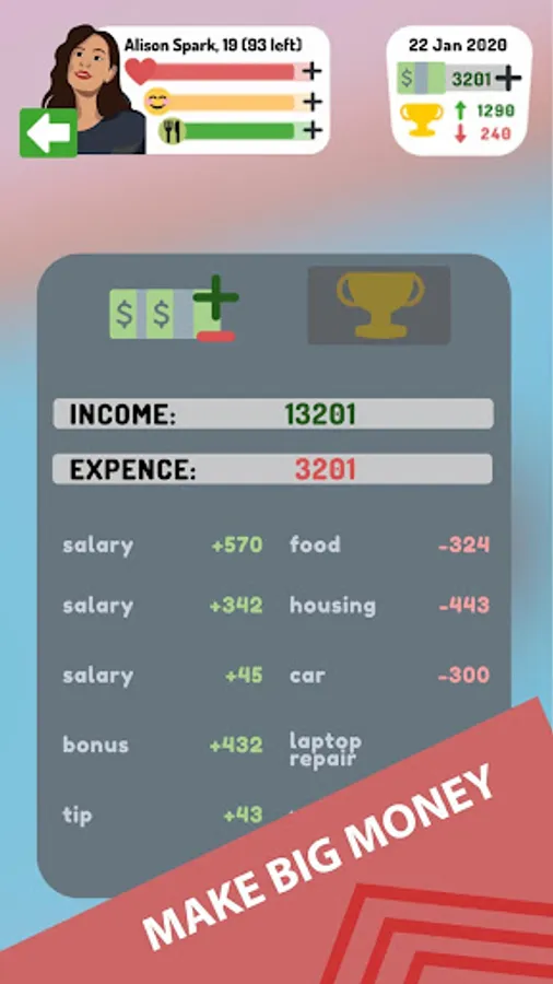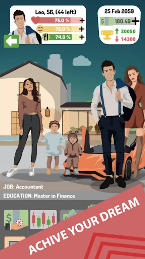 , trade in the stock market and win money at the casino, buy houses, cars, and so on, do whatever it takes, but become a CEO before your character dies of old age.