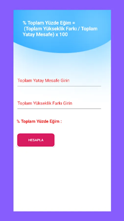 The total percent calculation tool allows you to accurately assess the slopes in a given area. This feature is useful in areas such as land design, agriculture and construction projects. The app simplifies slope calculation processes and allows users to obtain accurate results.