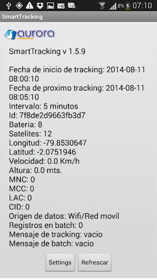 Mobile app compatible with auroraSFA tracking, active tracking reporting to a server usually that of auroraSFA maps,