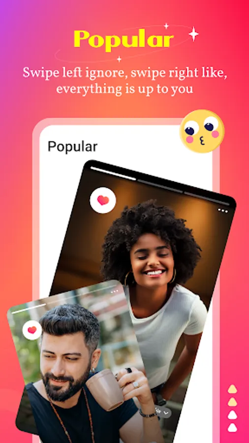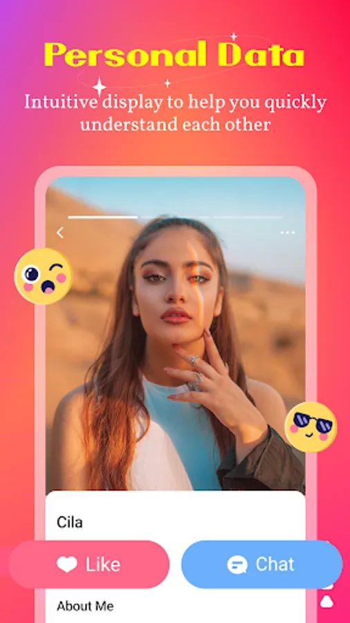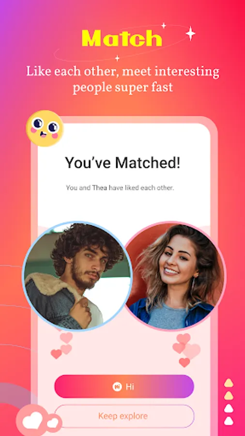 Share your interests and learn more about your matches to get the conversation started, and get the sparks flying.You can meet various kinds of person as much as you want. Just keep sliding the interface,there will finally turns out someone you like.We quickly learn your type and only introduce you to people we think would make a great date for you, increasing your chances to find love, not friends.