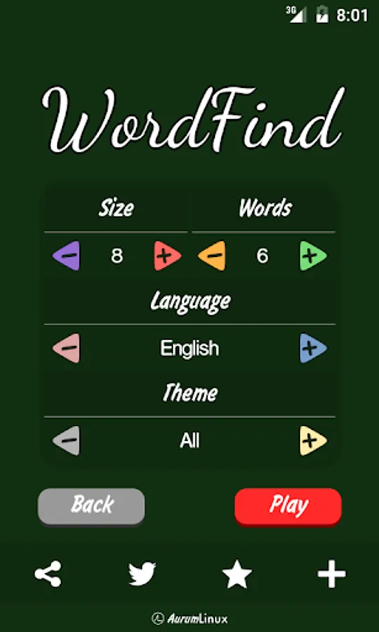 - Normal: Set up your own word puzzle choosing the number of rows and columns, and the number of words to find. Each puzzle will be different!