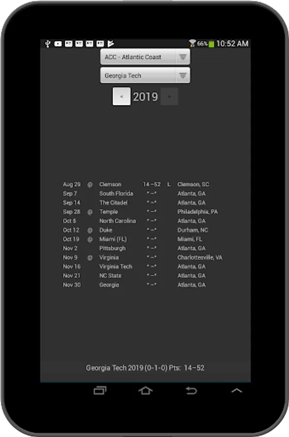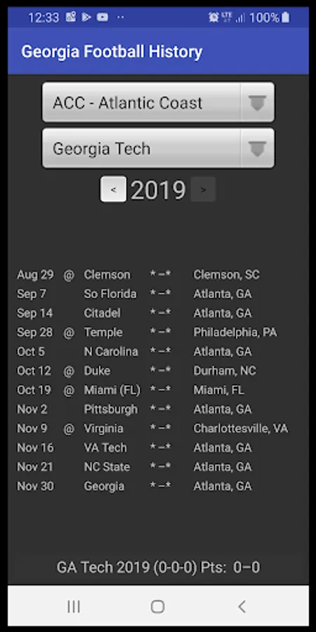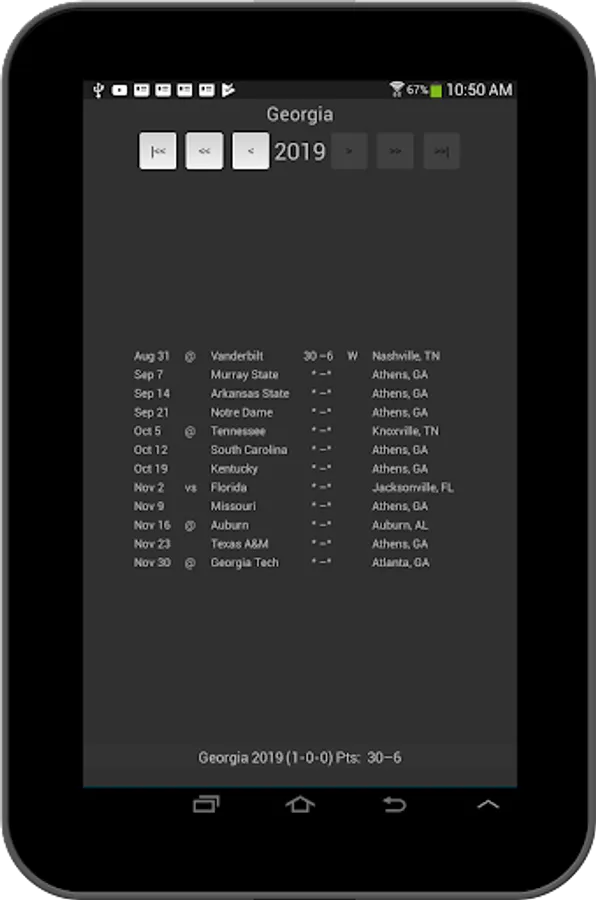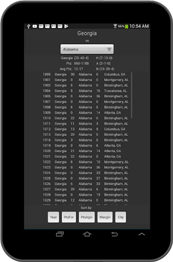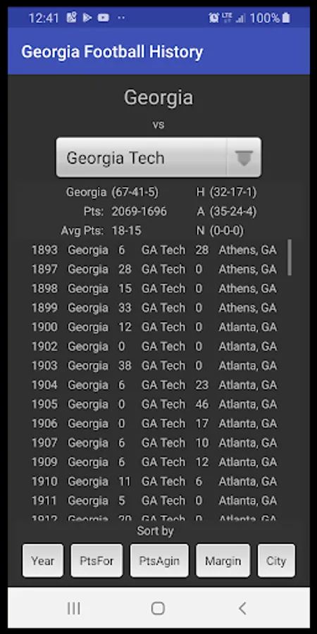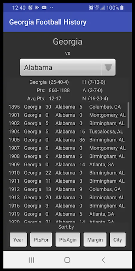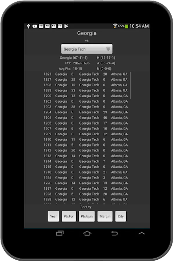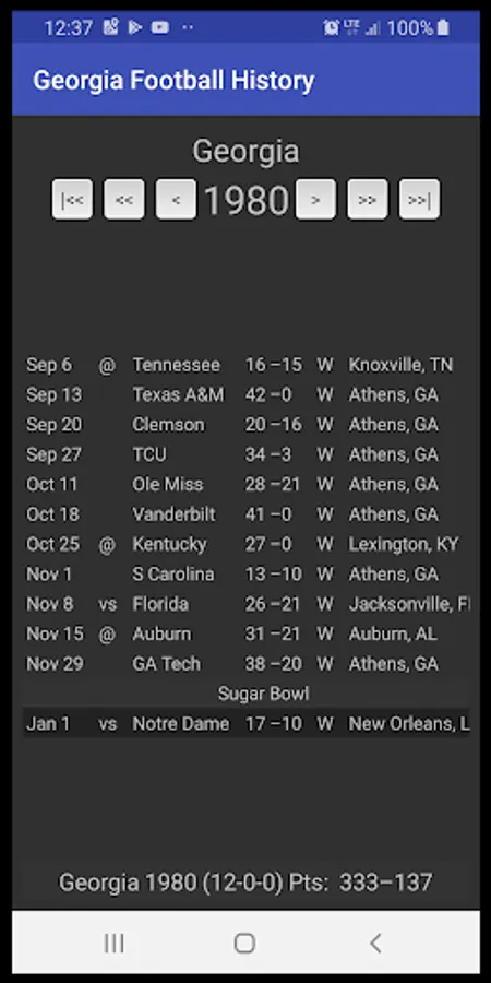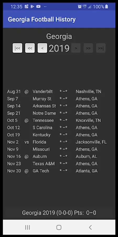 Look up the outcome of ANY game Georgia has ever played.
