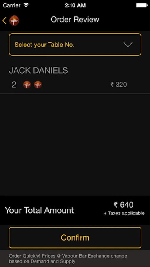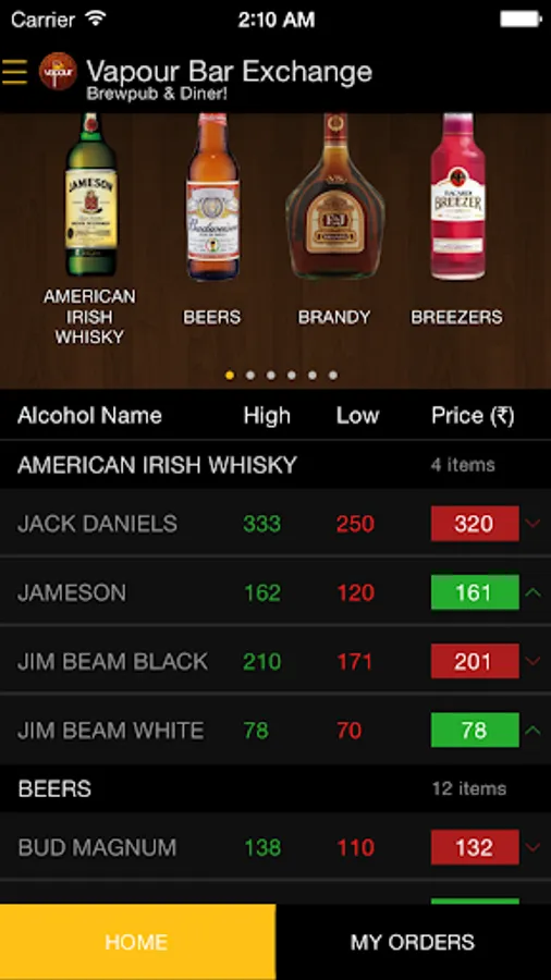 he market opens at 6 PM every day. At the Vapour Bar Exchange, customers can order drinks using their phones by downloading our apps or directly at the bar Prices and our Drinks Menu are also displayed on the LCDs placed strategically in all sections of the bar.