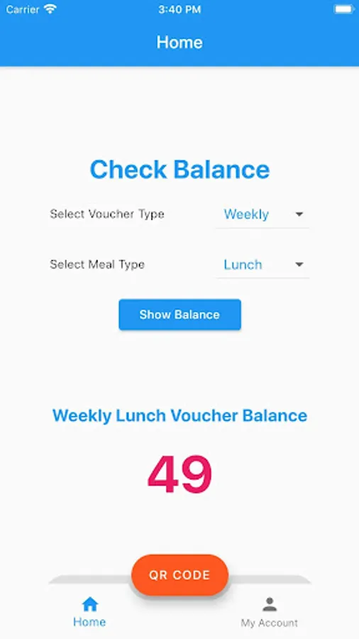 This Canteen App is used for checking balance of Voucher of Canteen meal and showing QR-Code at merchant.