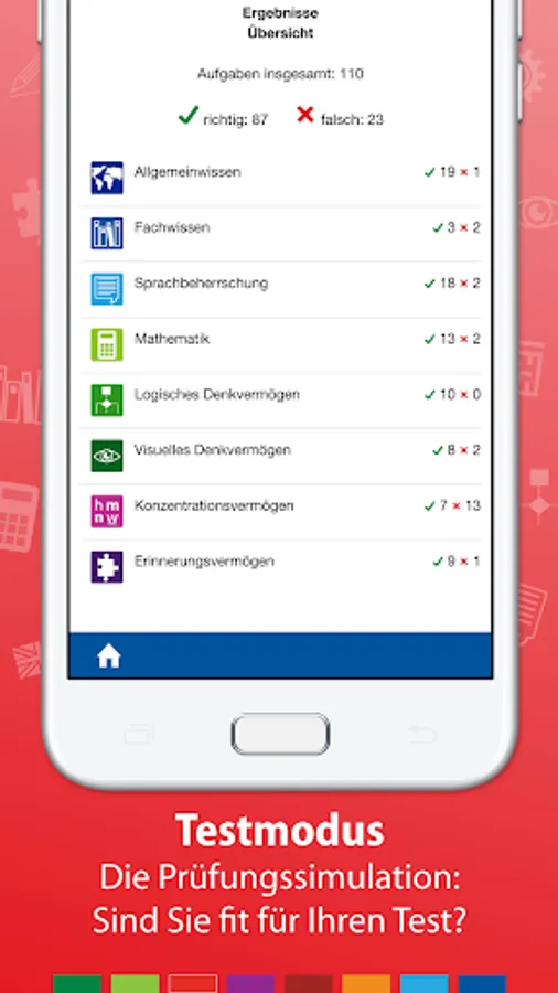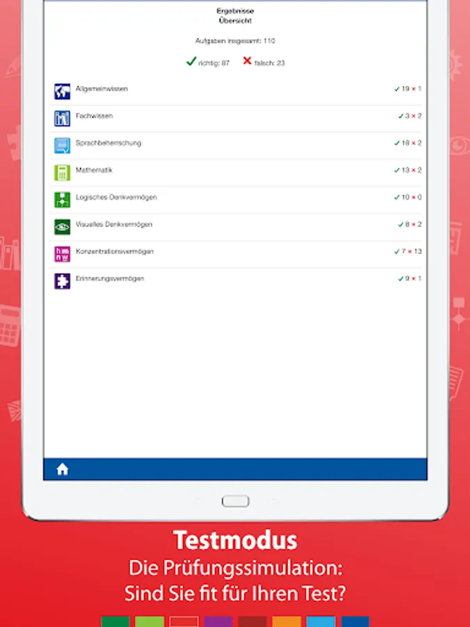 • All typical test areas: general knowledge, subject-specific knowledge, language proficiency, math, logic, visual thinking skills, memory, attention span