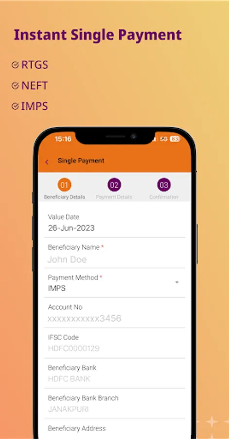 • Transfer money using various payment modes such as Internal Fund Transfer for transfers with AU Small Finance Bank & to other Bank’s via NEFT, RTGS and IMPS