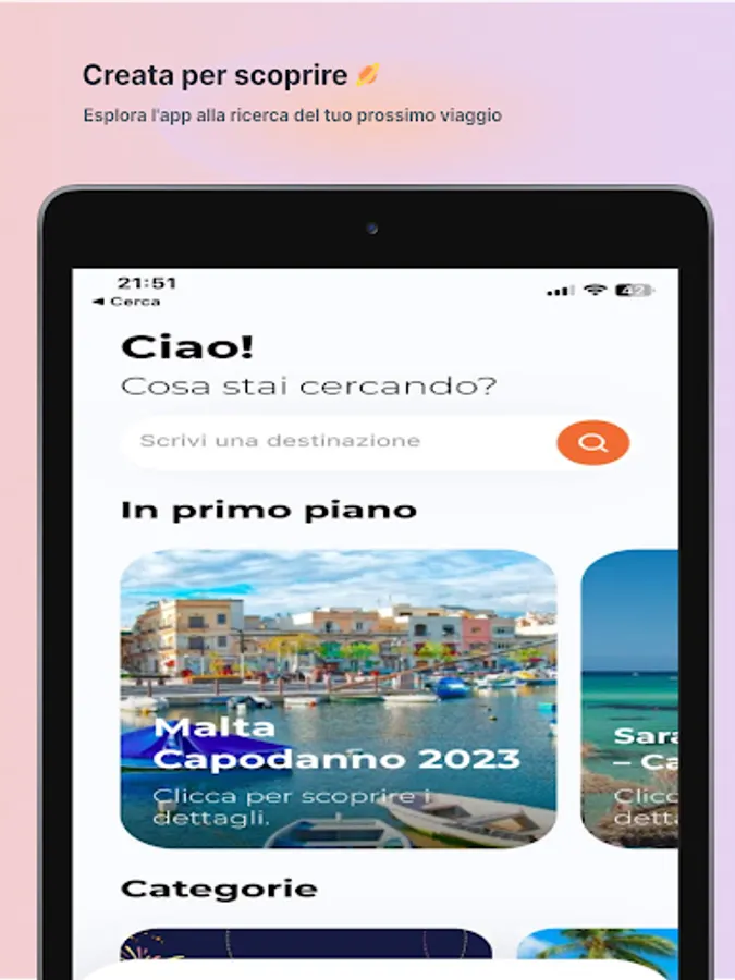 Download the AusoniaViaggi app to view, in real time, the travel catalog we have, book an appointment, download the documents you need to enjoy your trip to the fullest!