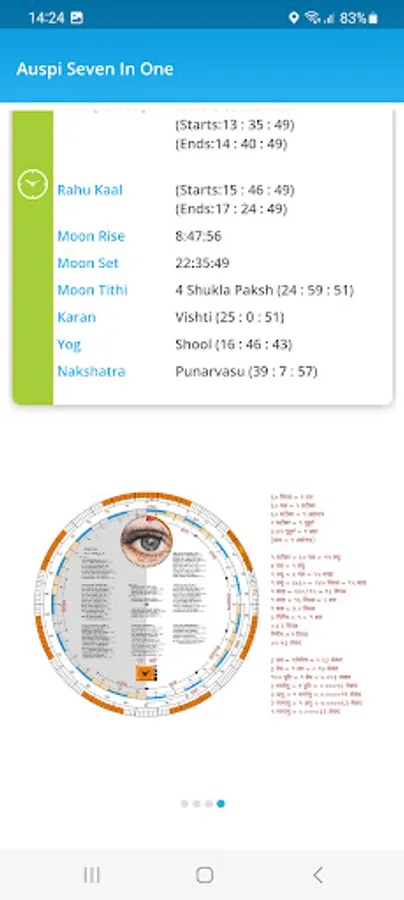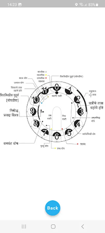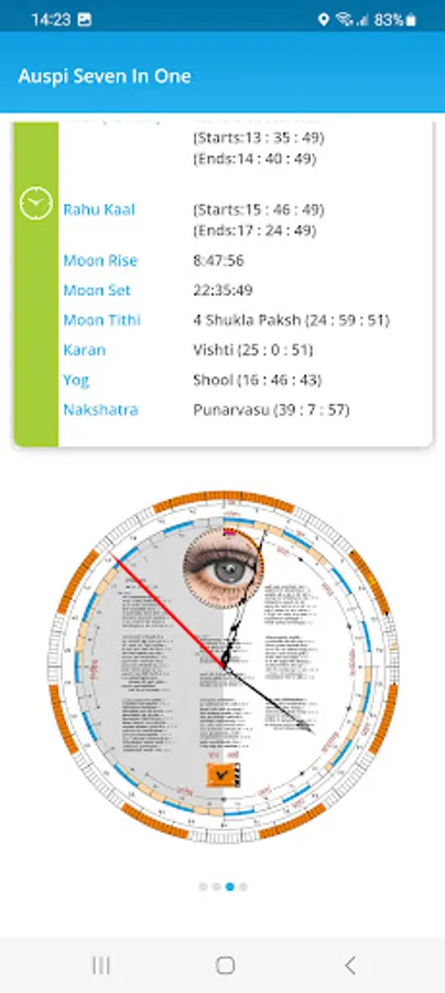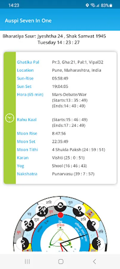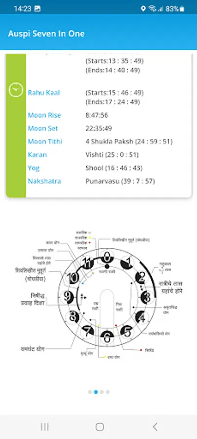 Application shows Dial of Every day of the week which has lot of information like Direction not to Travel indicated in Black arrow , where 0 on dial indicates NORTH Direction.