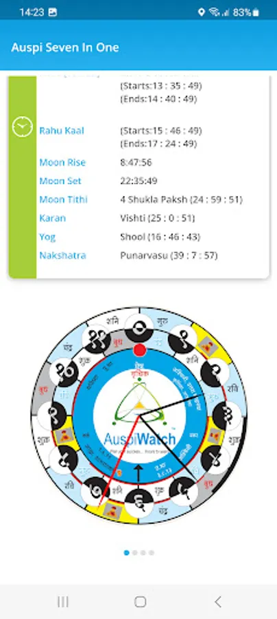 For example - MONDAY - The color on the Auspiwatch dial i.e. white and sky blue indicates the color code to be used for dressing. The white and yellow - duel Color spot on the top of Auspiwatch dial shows the SATVIK and RAJSIK nature of the ruling planet MOON indicating the SATVIK and RAJSIK nature of work to be undertaken on that particular day.
