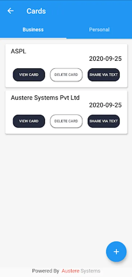 - Sync your phone contacts with the app and directly share your cards with the contacts.
