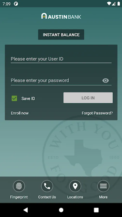 The Austin Bank mobile app uses the same bank-level security that protects online banking. No personal or confidential information is stored on your mobile device.