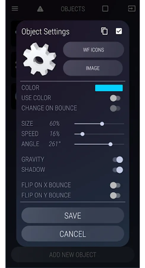 In wallpaper factory, you can upload your own videos to use for your live wallpaper, or make your own live wallpaper using custom objects that bounce around the screen. If you've ever wanted to have the faces of your loved ones bouncing around on your phone lockscreen, with a scenic backdrop of your favorite place in the background, this is your go-to app. You can have as many objects as you want bouncing around in the foreground, and can edit many of their attributes such as: