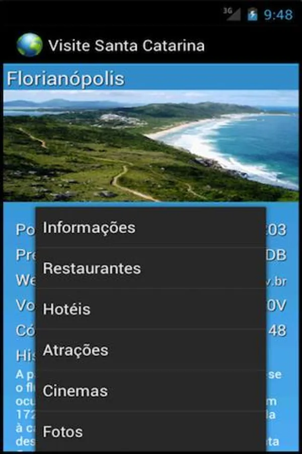 Want to visit Santa Catarina? Make sure you download this Guide application! Here you will find the main restaurants, hotels, theaters, attractions, and useful phone numbers, etc...
