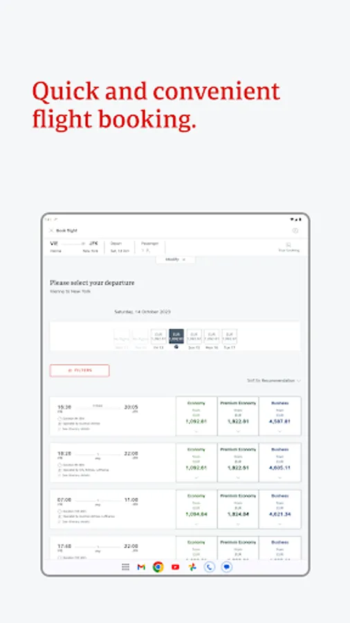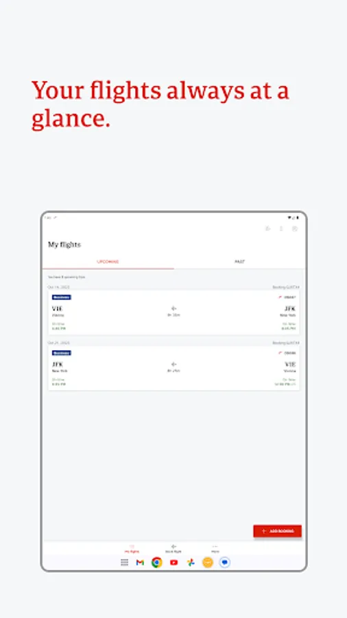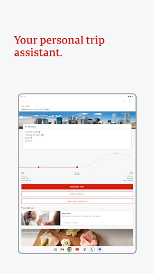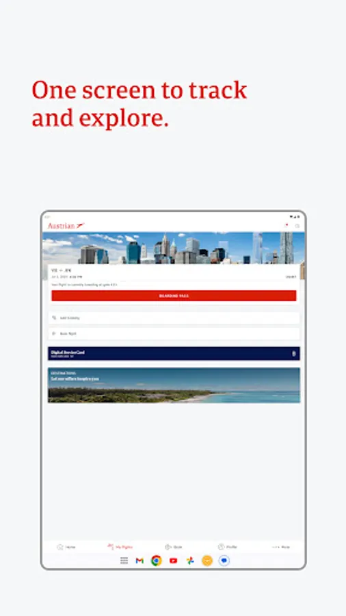 Experience a smooth journey with the Austrian app. From booking your flight to landing and beyond, you can stay informed at all times. You can also conveniently manage your data and access personalized services via your personal profile.