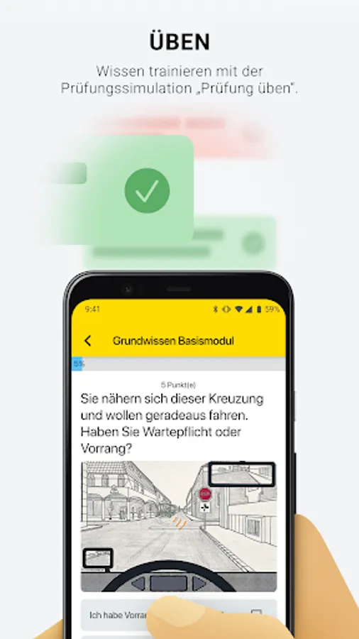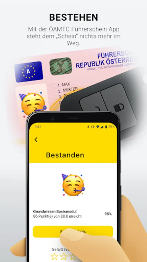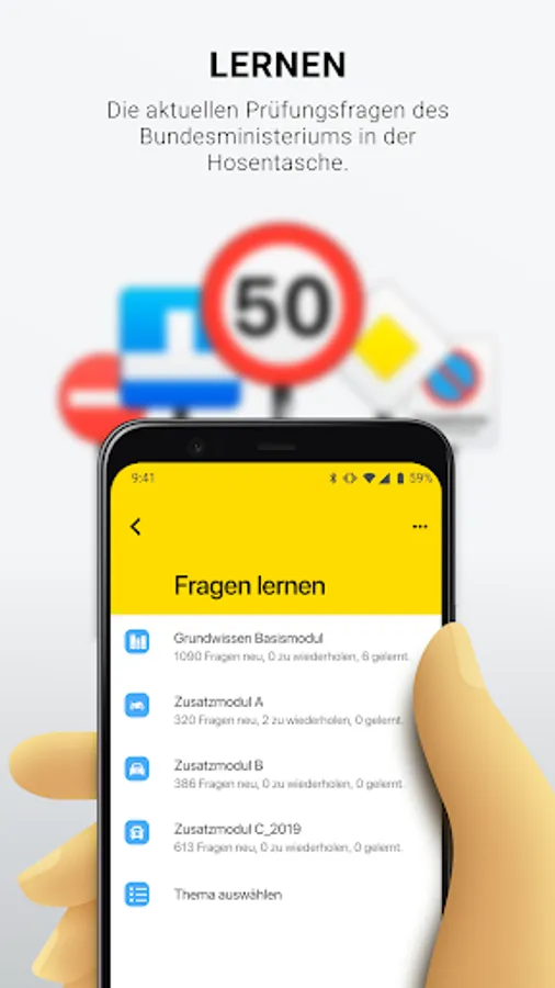 With the ÖAMTC driver's license app, the driver's license test for the Basic Knowledge, A or B modules can be simulated free of charge or training can be completed.
