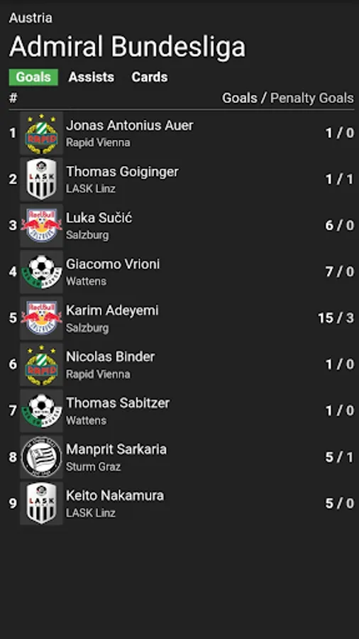 - Matches from the austrian bundesliga league are automatically updated in the austrian bundesliga .