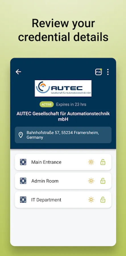 XMP2GO app serves as cloudless mobile credentials. It allows employees and visitors to use mobile devices instead of keys and badges to access needed facilities. The app allows to import the credential file and use it to get access. The app supports protected credentials.